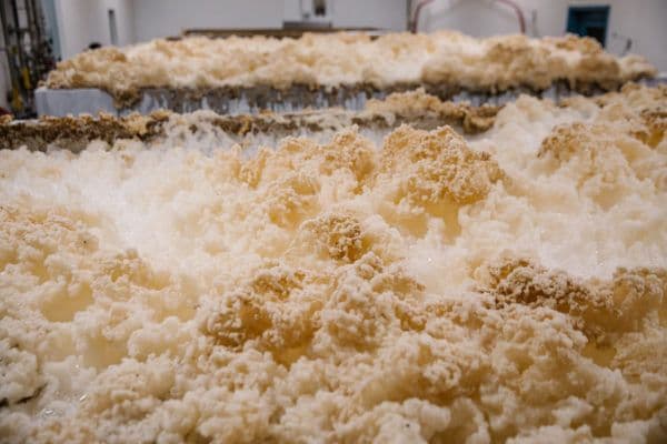 Open fermenters at Sierra Nevada Brewing Co. displaying the foamy head called krausen.
